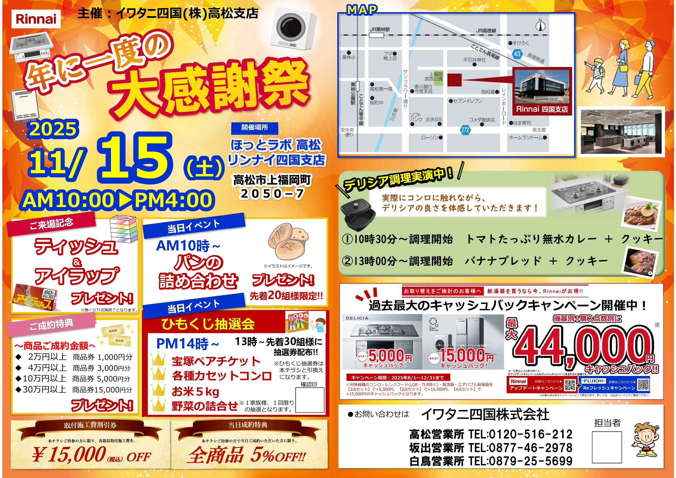 2025年11月15日(土)高松営業所 秋の感謝祭 開催のお知らせ 2025/10/14