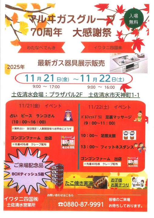 2025年11月21日(金)22日(土)土佐清水営業所 秋の感謝祭 開催のお知らせ 2025/11/6